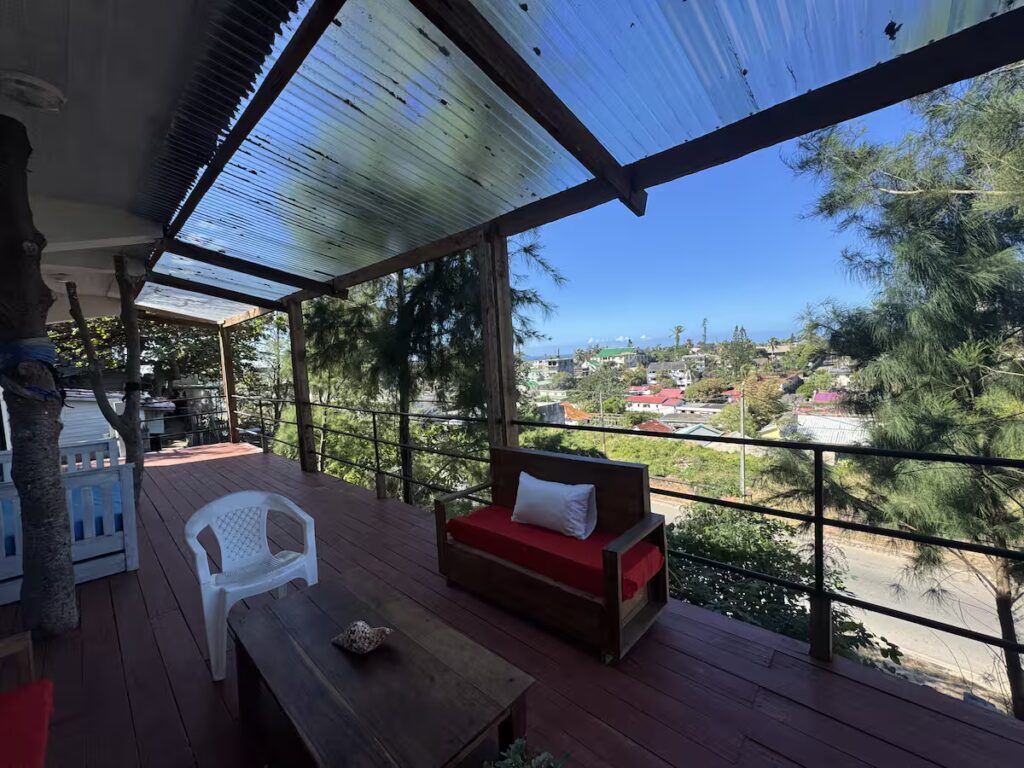 Vues panoramiques à 360 degrés sur Fort Dauphin depuis le point le plus élevé de la ville. Pas de blague. Grand studio de luxe avec mobilier sur mesure, un matelas confortable, WC et douche privés, terrasse privée et kitchenette.